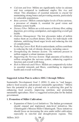 Suggested Action Plan to achieve SDG 2 through Millets: