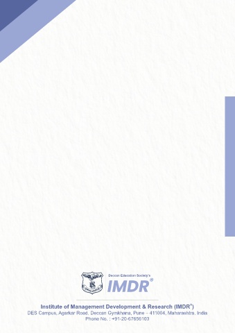 Deccan Education Society's IMDR ® ® Institute of Management Development & Research (IMDR ) DES Campus, Agarkar Road, Deccan Gymkhana, Pune – 411004, Maharashtra, India Phone No. : +91-20-67656103