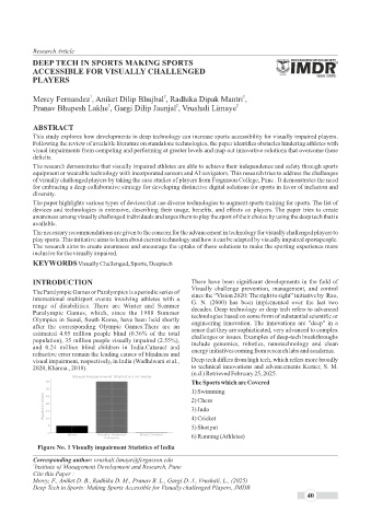 of visually challenged players by taking the case studies of players from Fergusson College, Pune . It demonstrates the need
